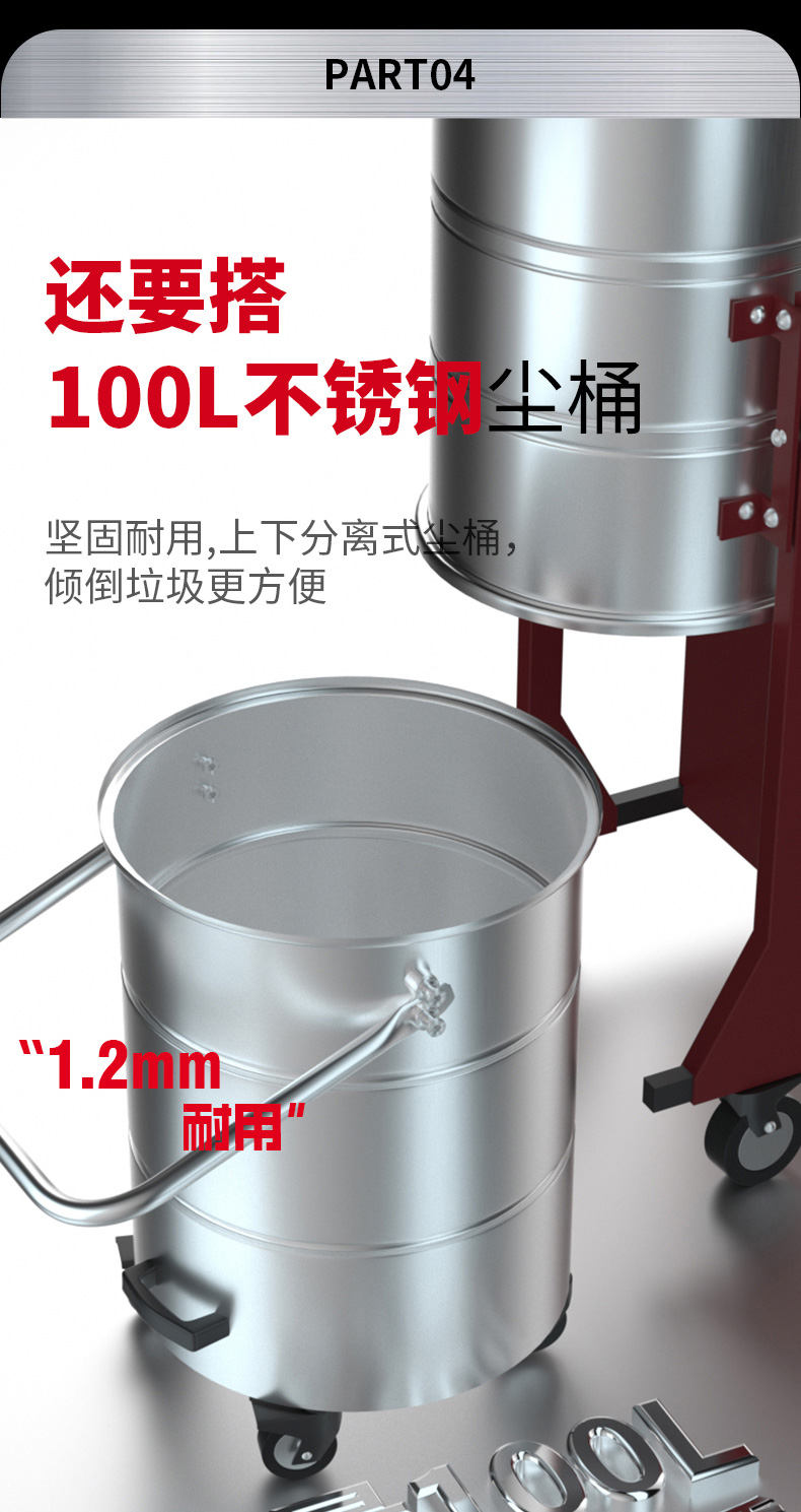 儋州坦洁220V单桶不锈钢工业吸尘器X3系列